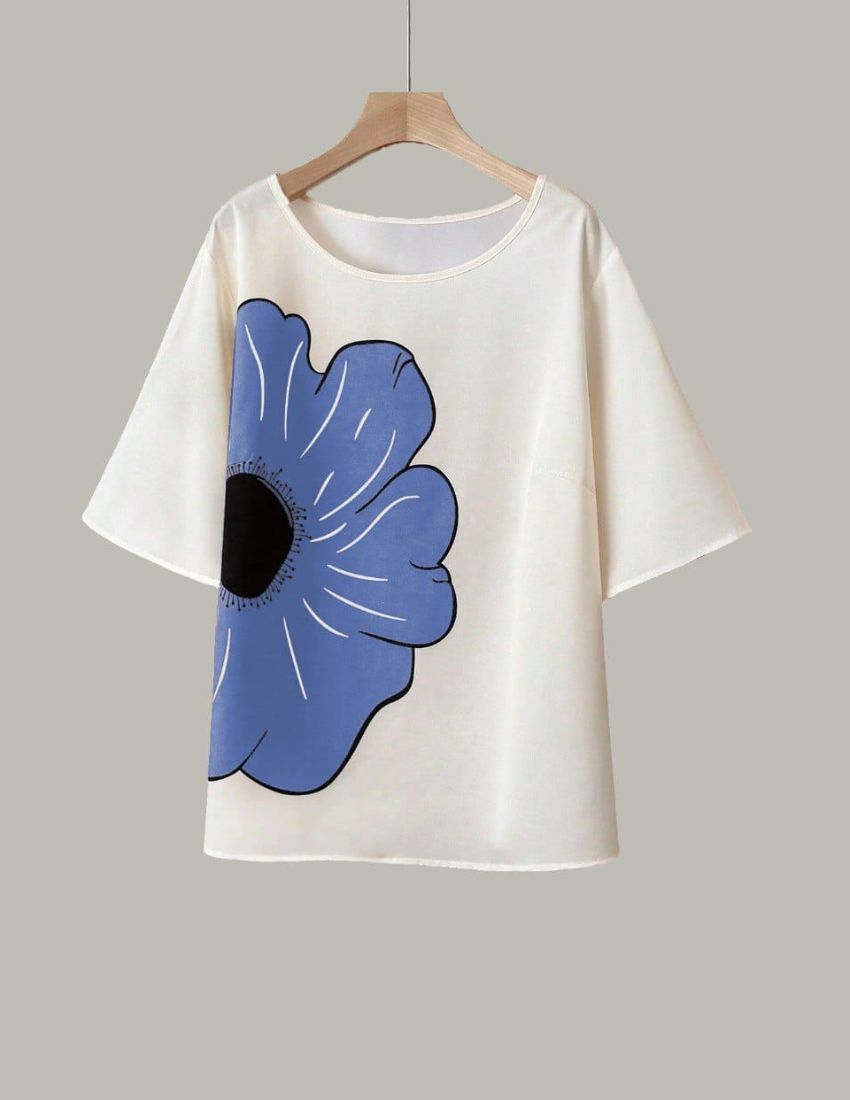 Add a touch of elegance to your wardrobe with this Azure Sky Blue Flower Printed Lycra Casual Top for Women. Made from premium-quality lycra fabric, this top is designed to provide maximum comfort and a flattering fit. The striking flower print on a white base creates a chic and modern look, perfect for casual outings, brunch dates, or relaxed evenings.
