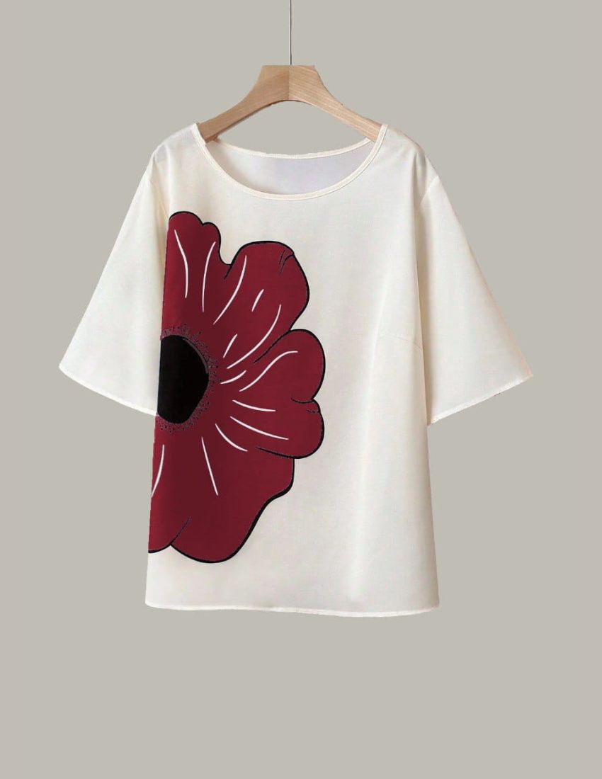 Add a touch of elegance to your wardrobe with this Burgundy Flower Printed Lycra Casual Top for Women. Made from premium-quality lycra fabric, this top is designed to provide maximum comfort and a flattering fit. The striking flower print on a white base creates a chic and modern look, perfect for casual outings, brunch dates, or relaxed evenings.