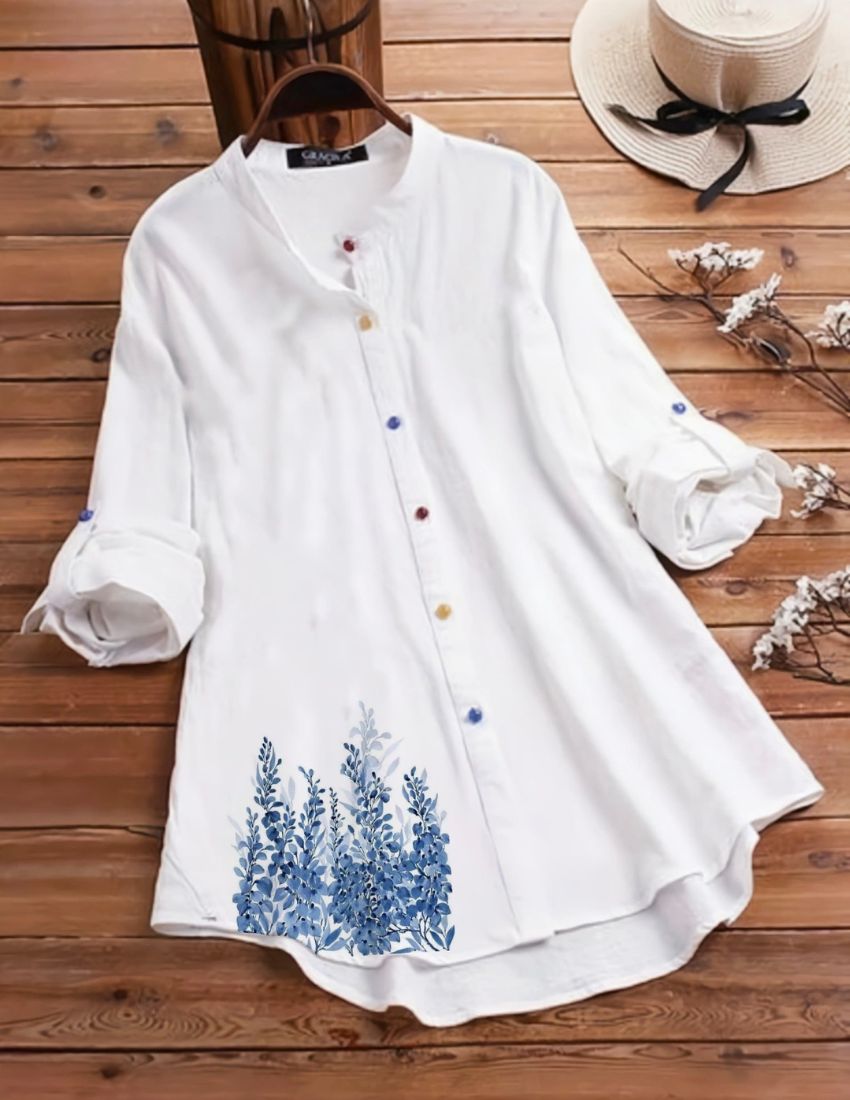 This top is a casual, elegant Top made from light and breathable rayon fabric, ideal for everyday wear or occasions. The floral print adds a feminine and artistic flair. he buttons are multicolored, adding a subtle playful touch to the shirt. The relaxed fit ensures comfort and versatility, suitable for pairing with jeans, trousers, or skirts.