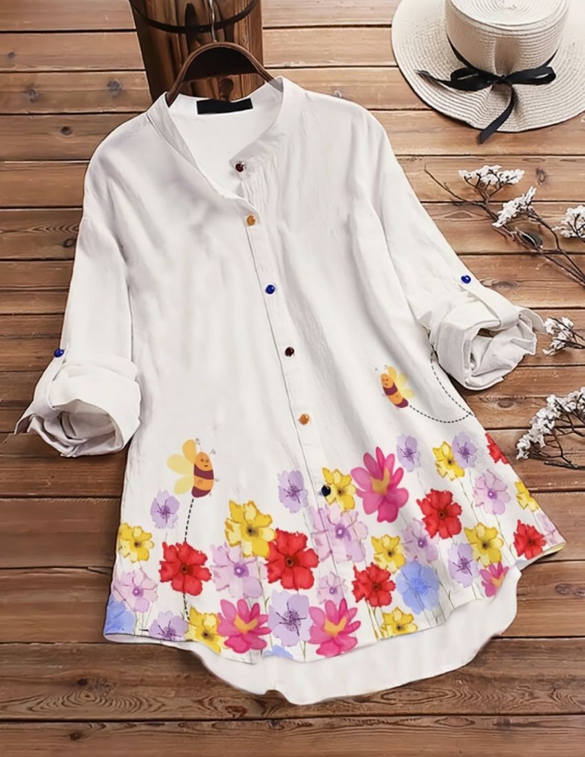 This top is a casual, elegant Top made from light and breathable rayon fabric, ideal for everyday wear or occasions. The floral print adds a feminine and artistic flair. he buttons are multicolored, adding a subtle playful touch to the shirt. The relaxed fit ensures comfort and versatility, suitable for pairing with jeans, trousers, or skirts.