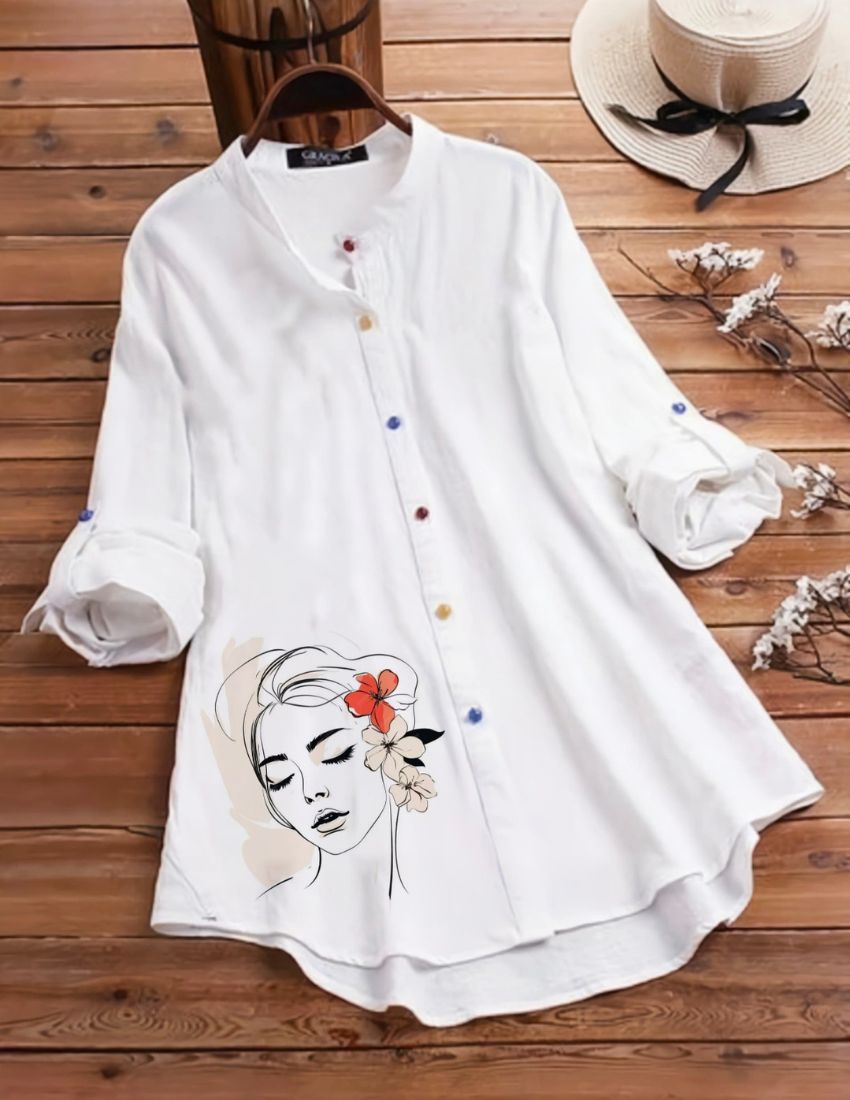 This top is a casual, elegant Top made from light and breathable rayon fabric, ideal for everyday wear or occasions. The floral print adds a feminine and artistic flair. he buttons are multicolored, adding a subtle playful touch to the shirt. The relaxed fit ensures comfort and versatility, suitable for pairing with jeans, trousers, or skirts.