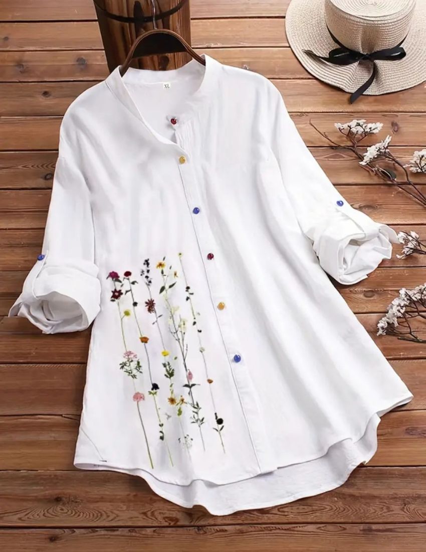 Elegant Floral Button-Up Top - Wildflower Symphony