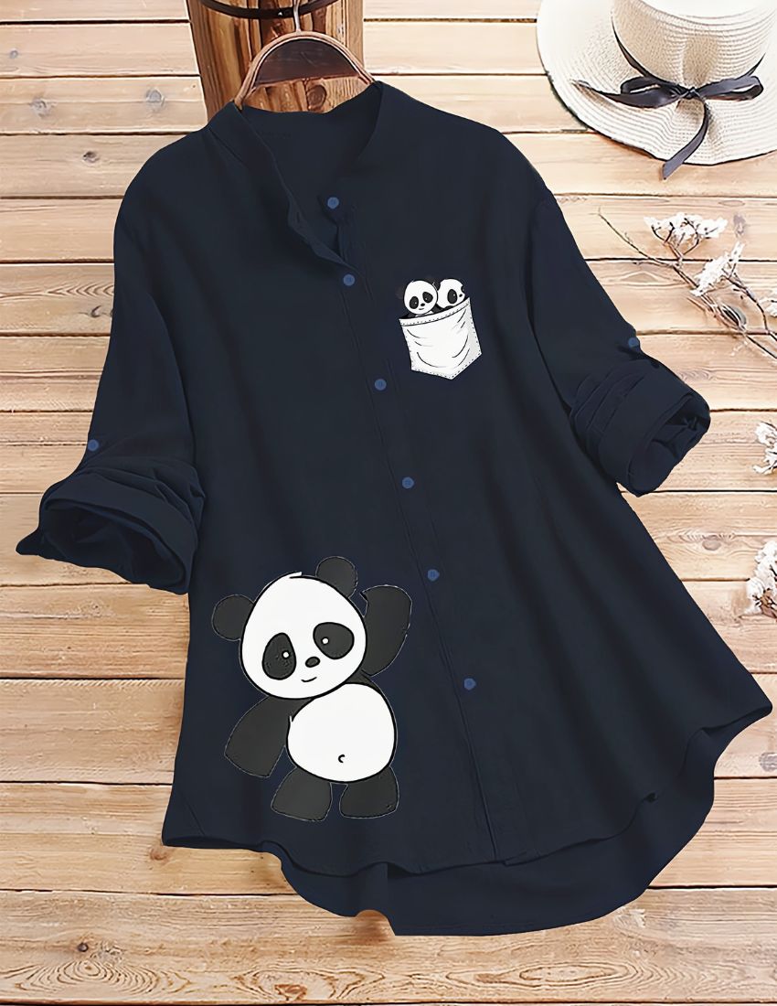 This stylish and comfortable button-up shirt. adding a playful and charming touch. With a relaxed fit, rolled-up sleeves, and a mandarin collar, this shirt is perfect for casual outings or lounging in style. making it a great choice for any season. Pair it with jeans or leggings for a cute and cozy look!