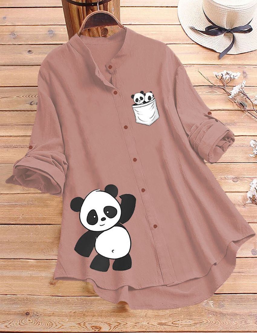 This stylish and comfortable button-up shirt. adding a playful and charming touch. With a relaxed fit, rolled-up sleeves, and a mandarin collar, this shirt is perfect for casual outings or lounging in style. making it a great choice for any season. Pair it with jeans or leggings for a cute and cozy look!