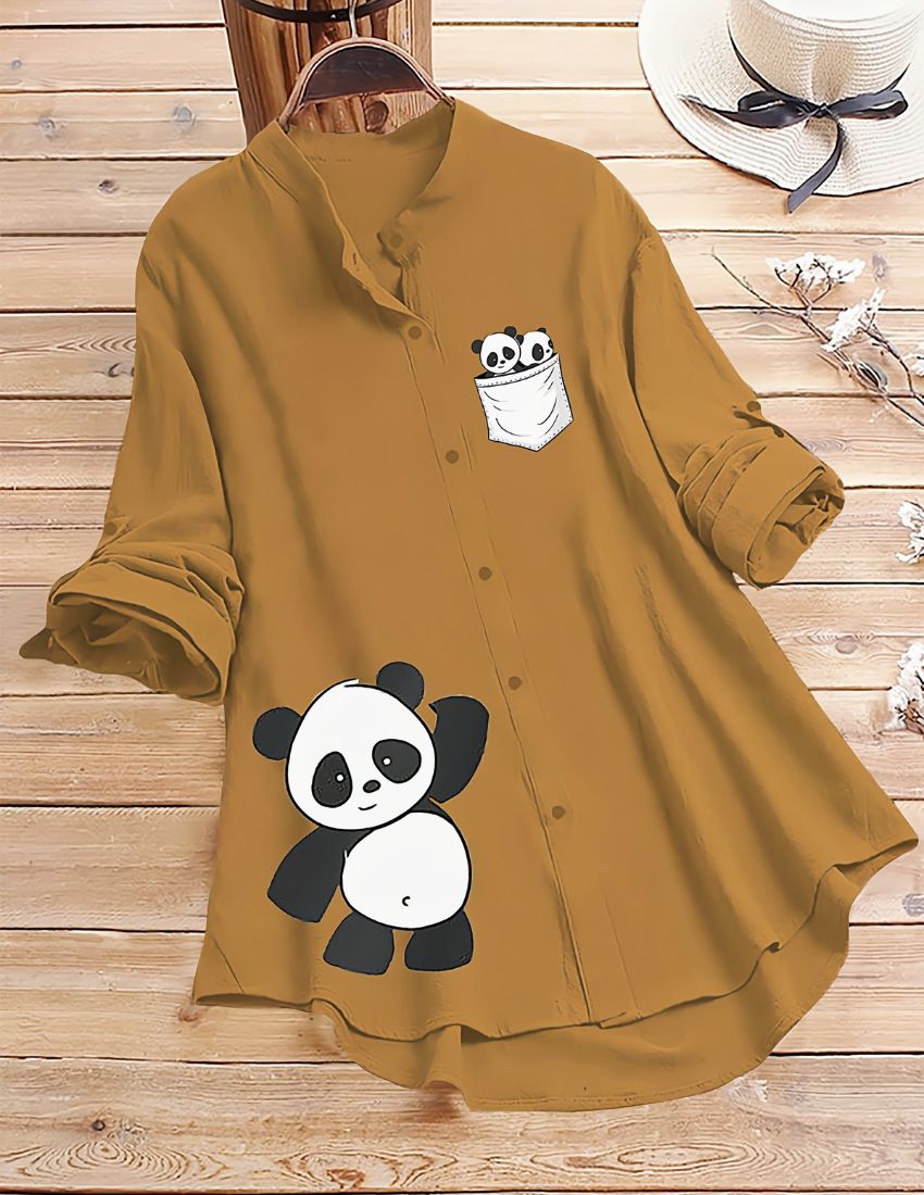 This stylish and comfortable button-up shirt. adding a playful and charming touch. With a relaxed fit, rolled-up sleeves, and a mandarin collar, this shirt is perfect for casual outings or lounging in style. making it a great choice for any season. Pair it with jeans or leggings for a cute and cozy look!