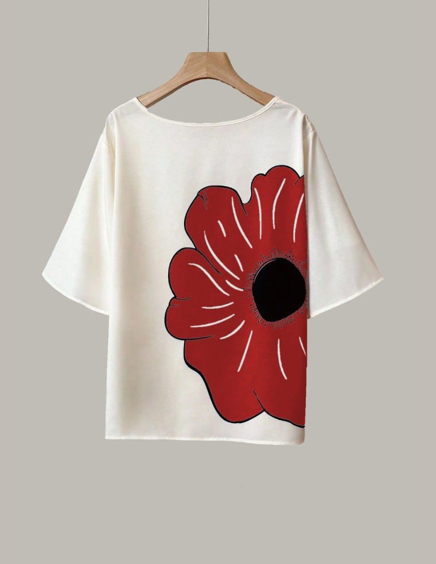 Add a touch of elegance to your wardrobe with this Scarlet Red Flower Printed Lycra Casual Top for Women. Made from premium-quality lycra fabric, this top is designed to provide maximum comfort and a flattering fit. The striking flower print on a white base creates a chic and modern look, perfect for casual outings, brunch dates, or relaxed evenings.