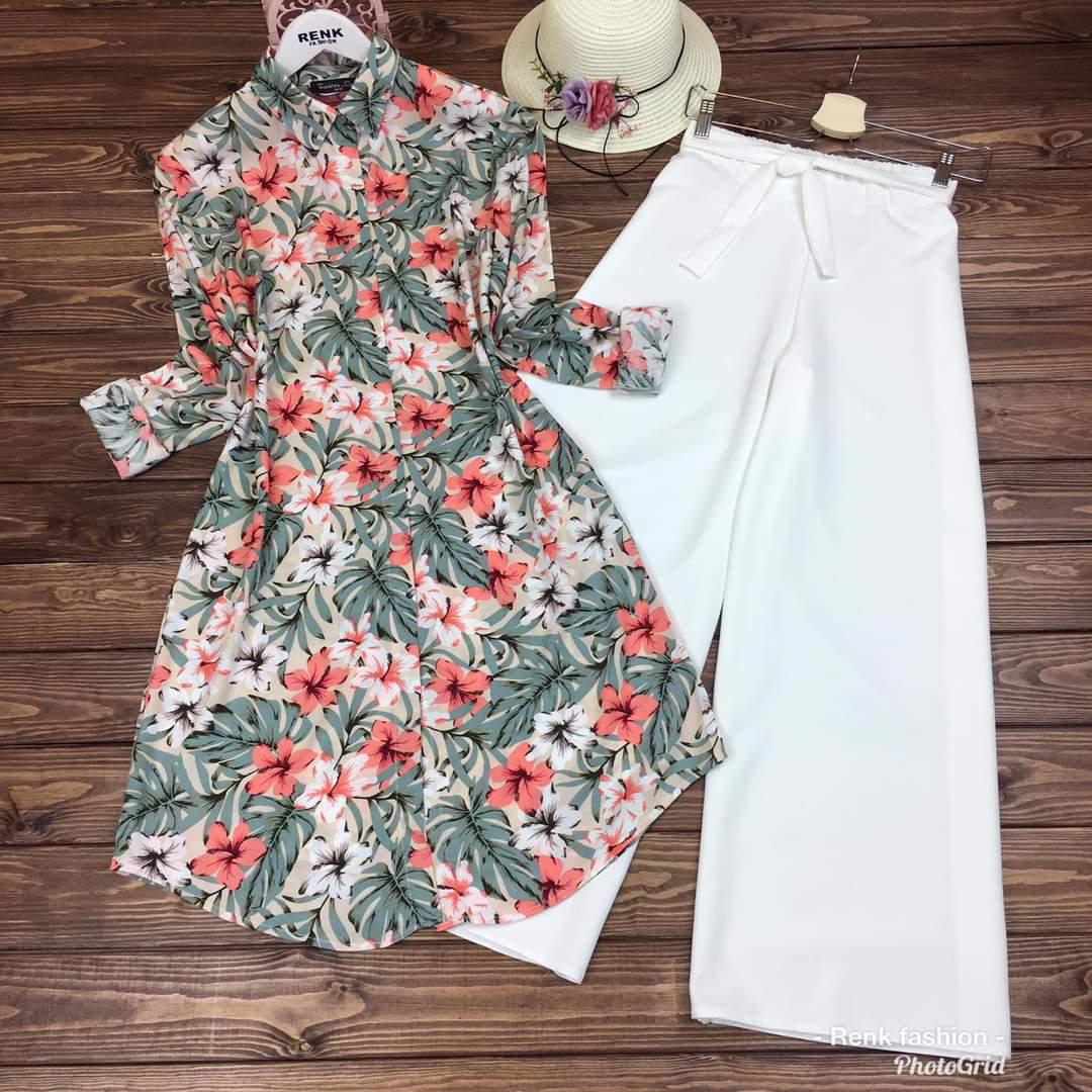 Flower Printed Top and Olive Palazzo Set